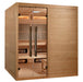 Indulge in premium relaxation with the expansive Toledo 6-person hybrid sauna, expertly crafted from sustainable, natural reforested Canadian Hemlock. Its innovative floating bench design includes a retractable lower bench, creating ample room for yoga or stretching. Seamlessly blending cutting-edge full-spectrum infrared technology with a robust Harvia traditional stove, this sauna offers an ideal harmony of soothing heat and wellness benefits. Perfectly accommodating up to six people with advanced Hybrid and Full Spectrum Technology.